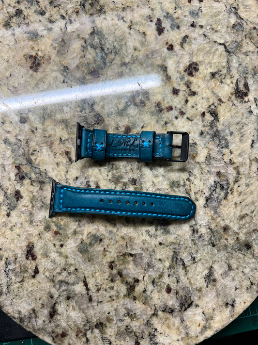 Aqua Full Grain Veg Tanned Leather - Apple Watch Strap (Ready to Ship)