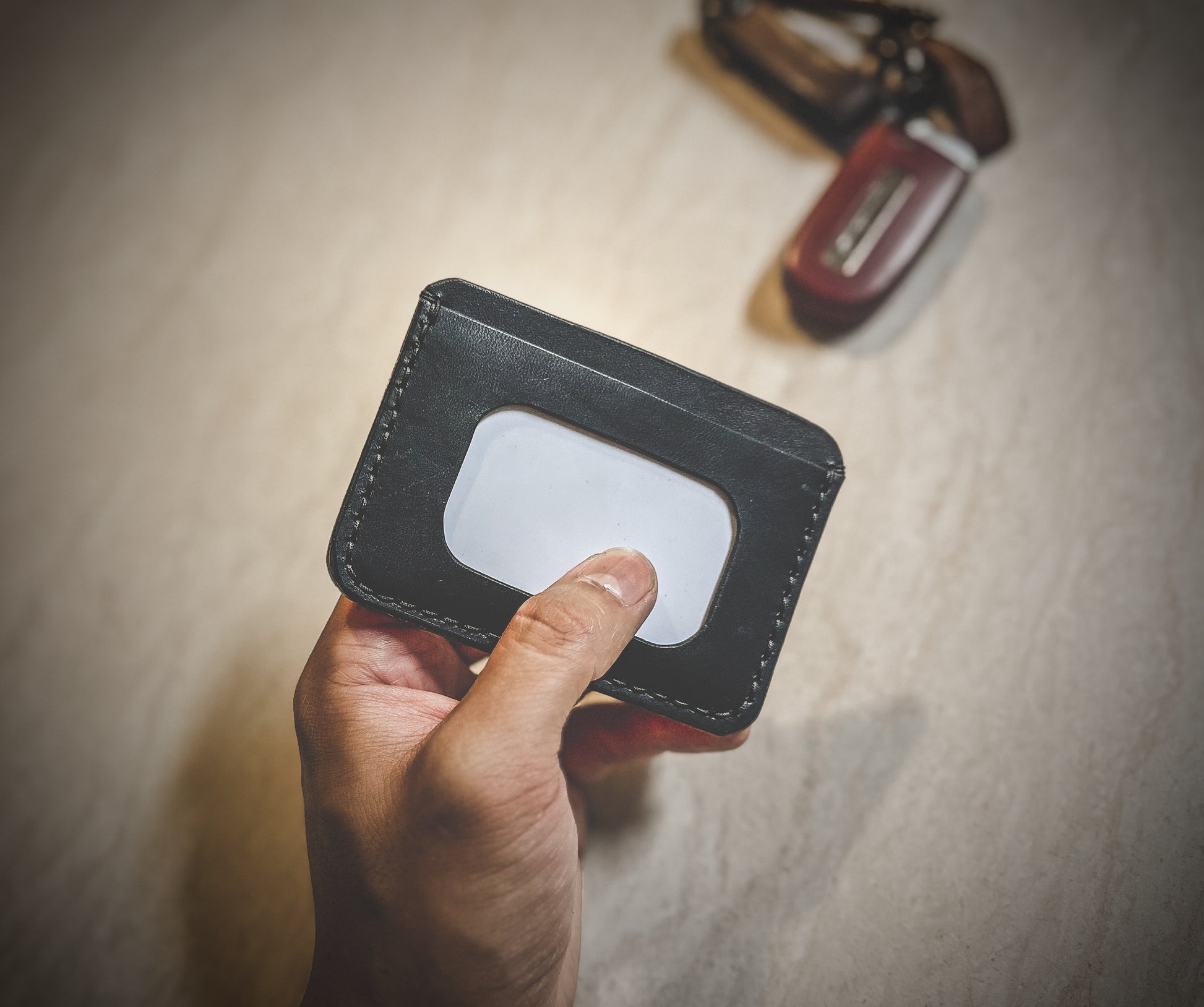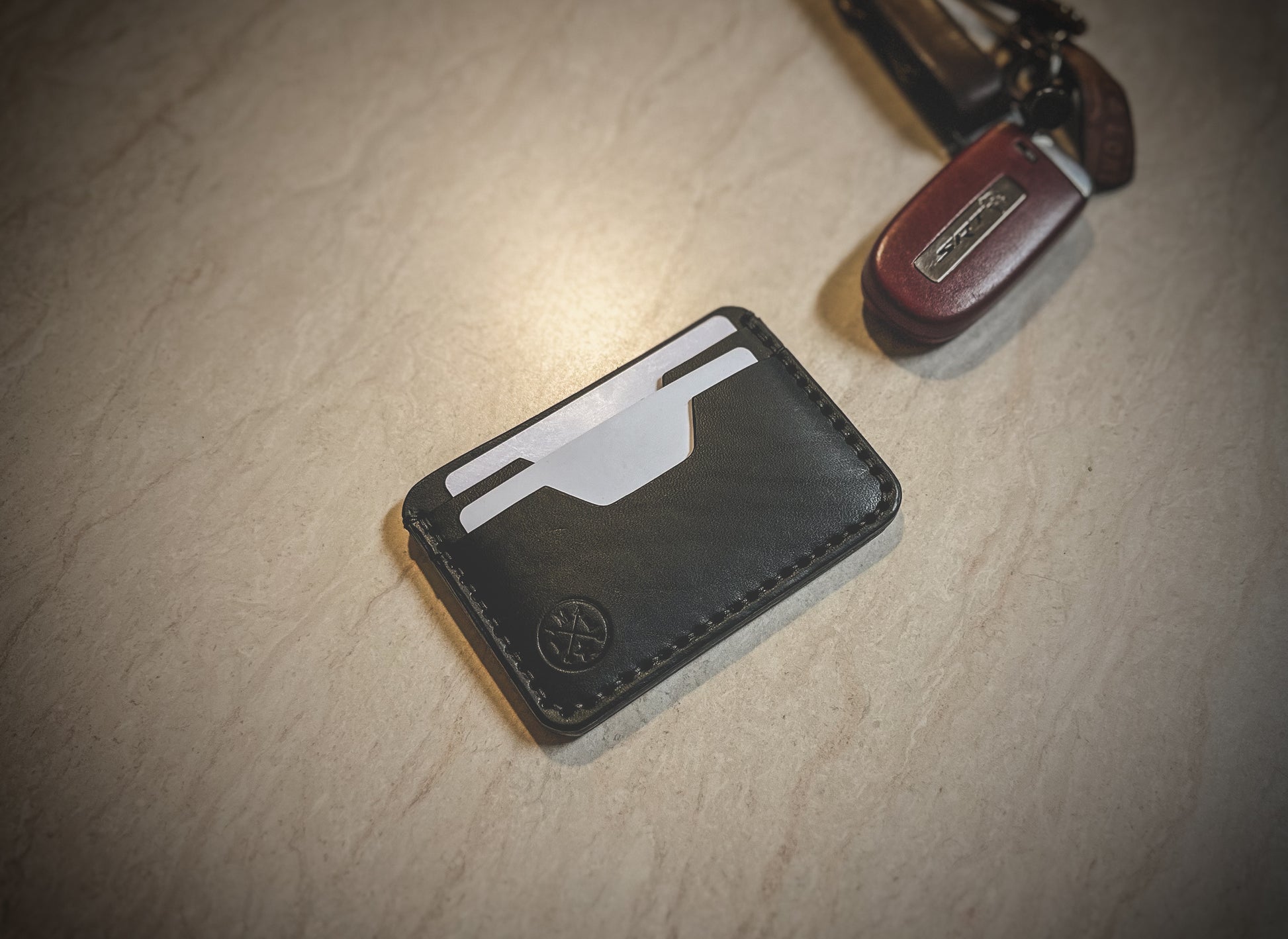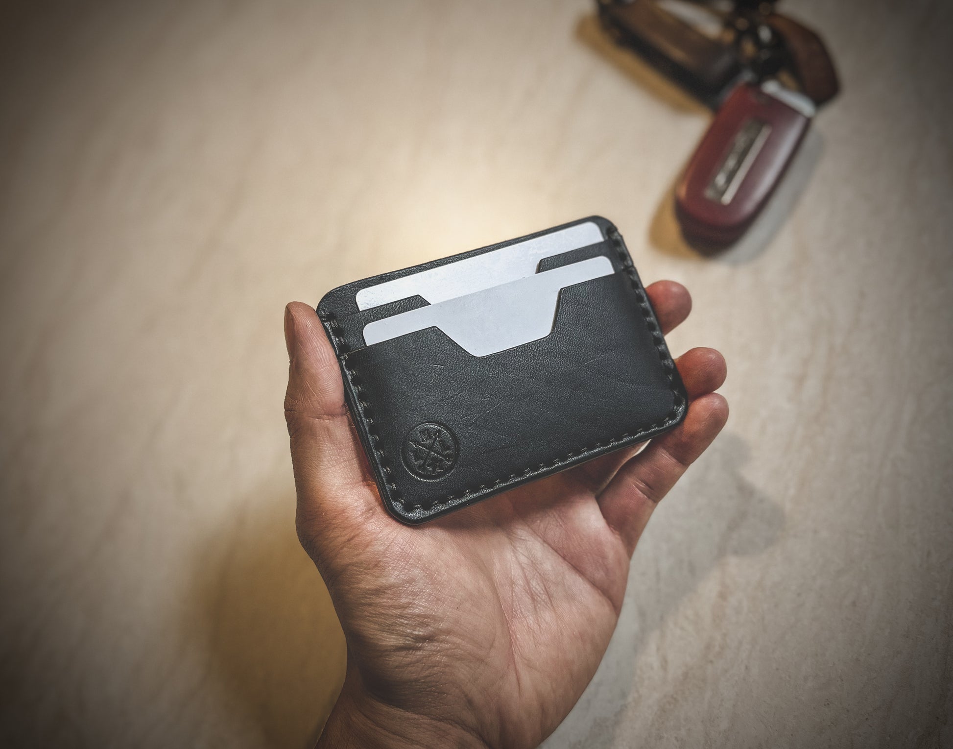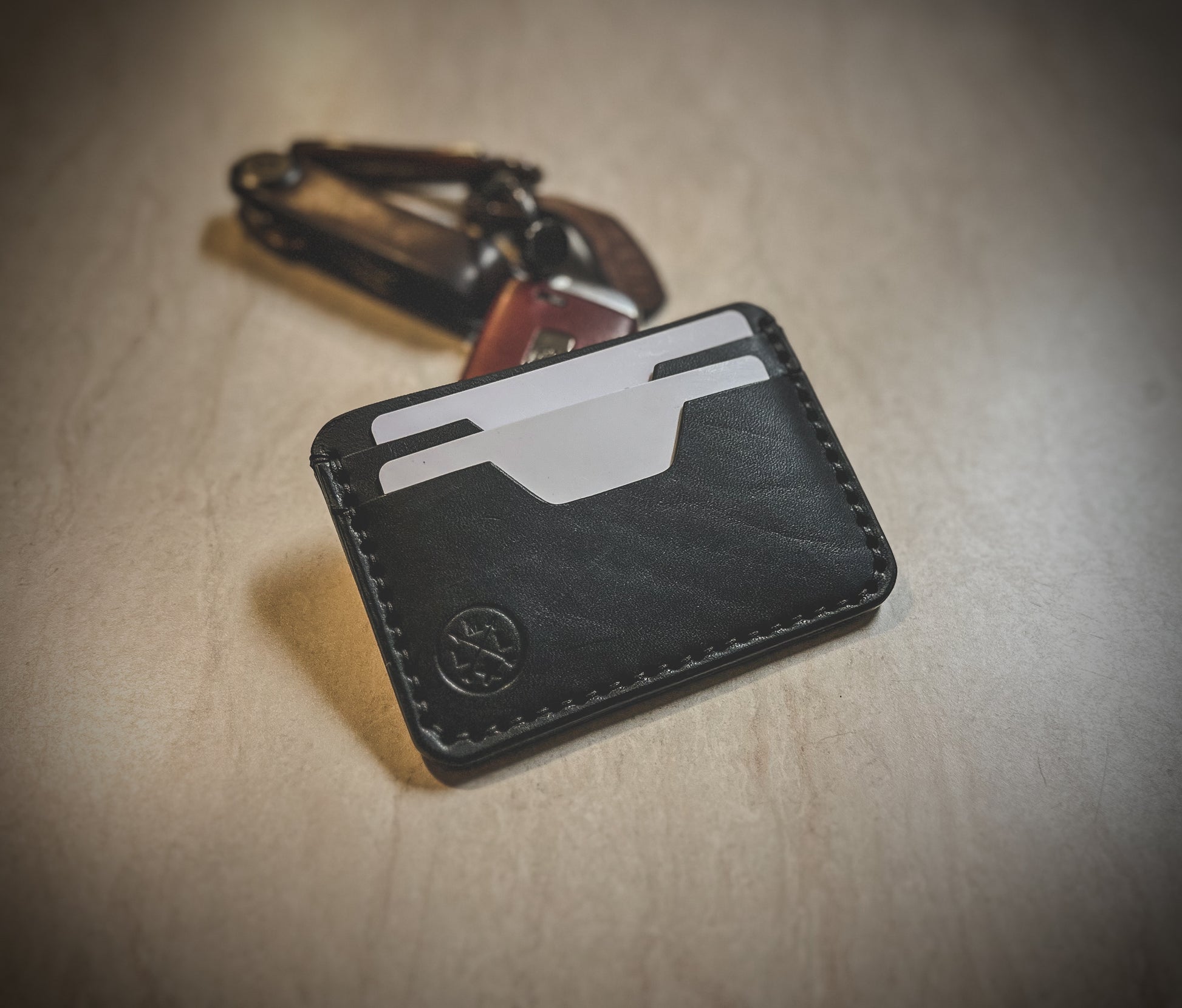 The wallet is made to order and offers 4 total pockets for your cards including an ID Slot. The leather has a thickness of 3-4oz. I hand dye veg tans or you can opt to keep it natural veg tan. I also offer premium leather options in various colors. (Additional cost)