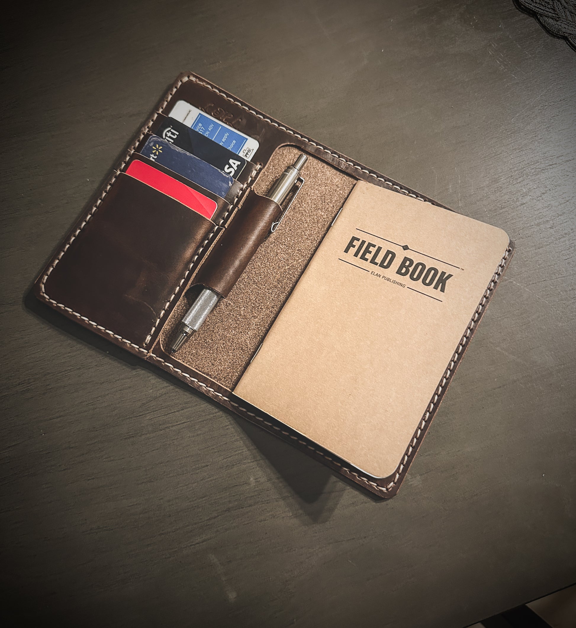 The 'Phoenix' is constructed with its 4 card slots to contain 4-6 cards comfortably. One hidden cash or receipt slot underneath the card holders side. One pen loop holder for a standard sized pen.