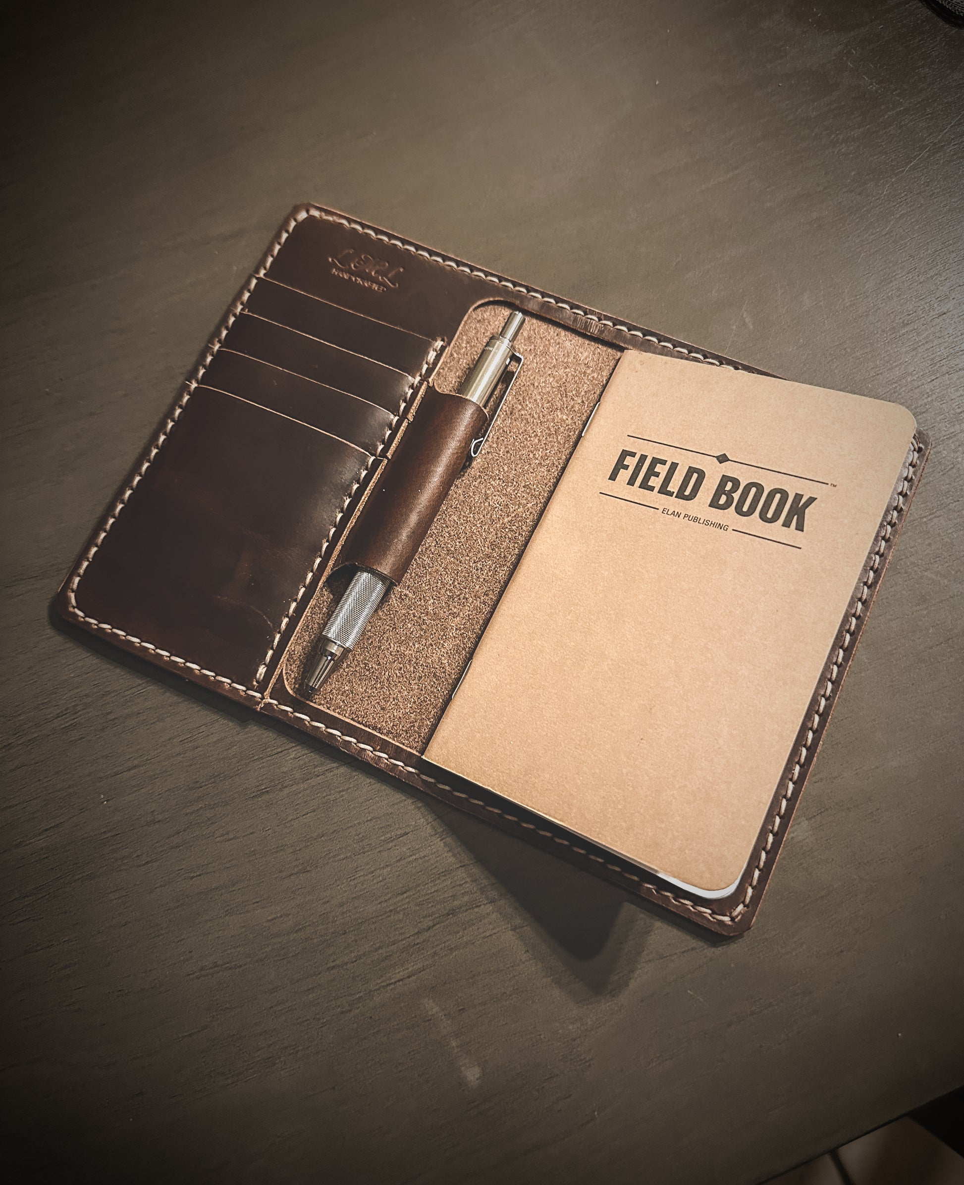 This item does not contain a book or pen or any cards shown in the photo. This listing is merely for the wallet shown.