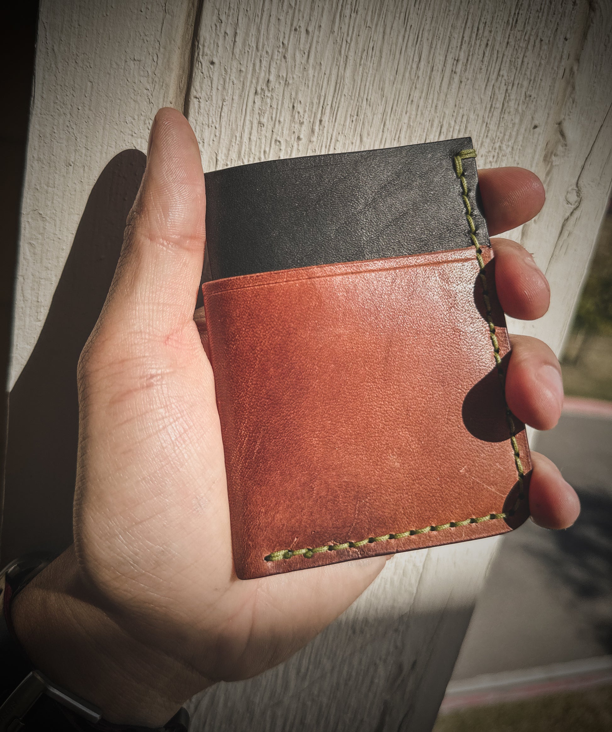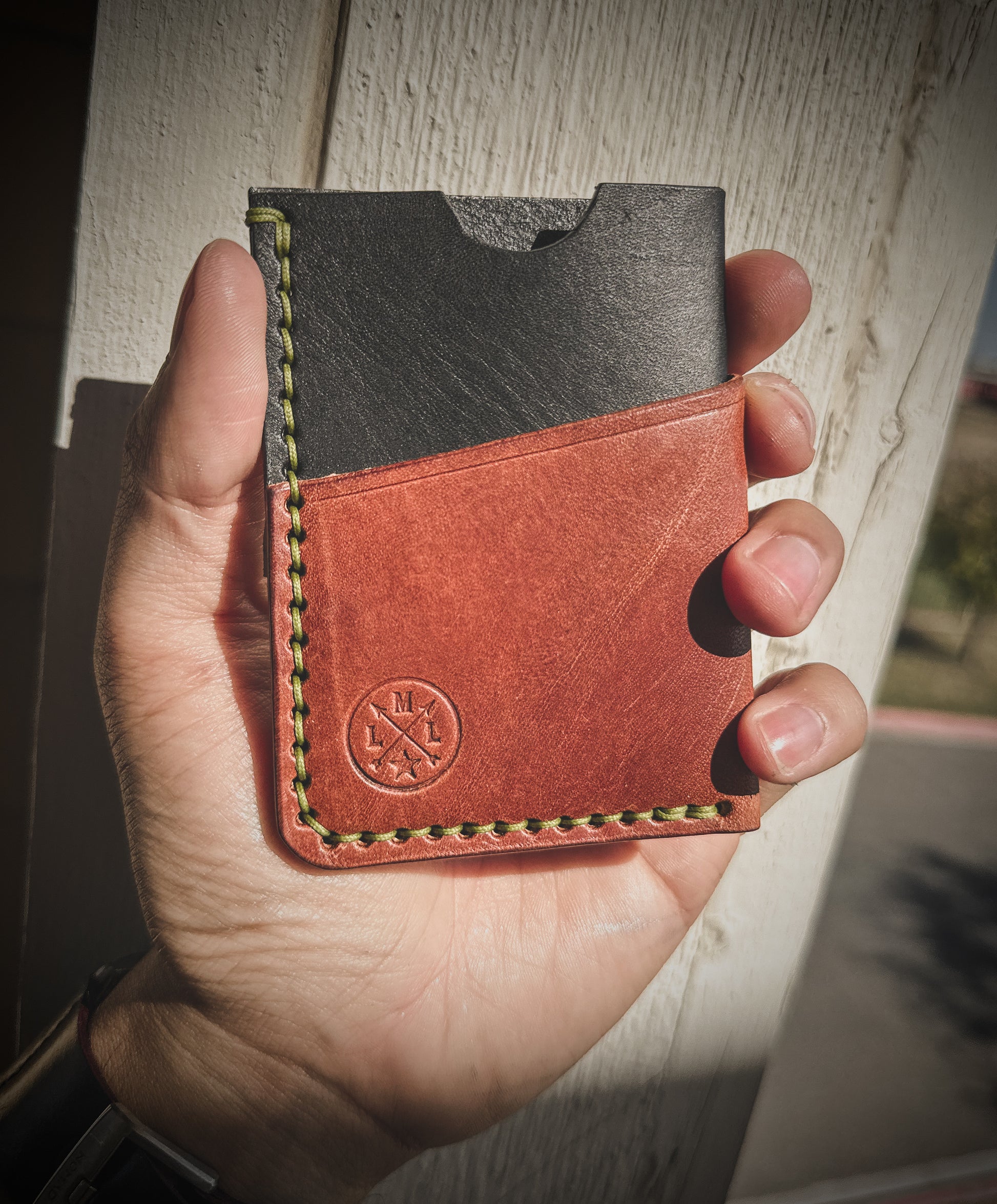 This wallet is made to order and features a 3-card slot minimalist design with a thumb cutout for ease of access to your cards from the front and inner pocket.