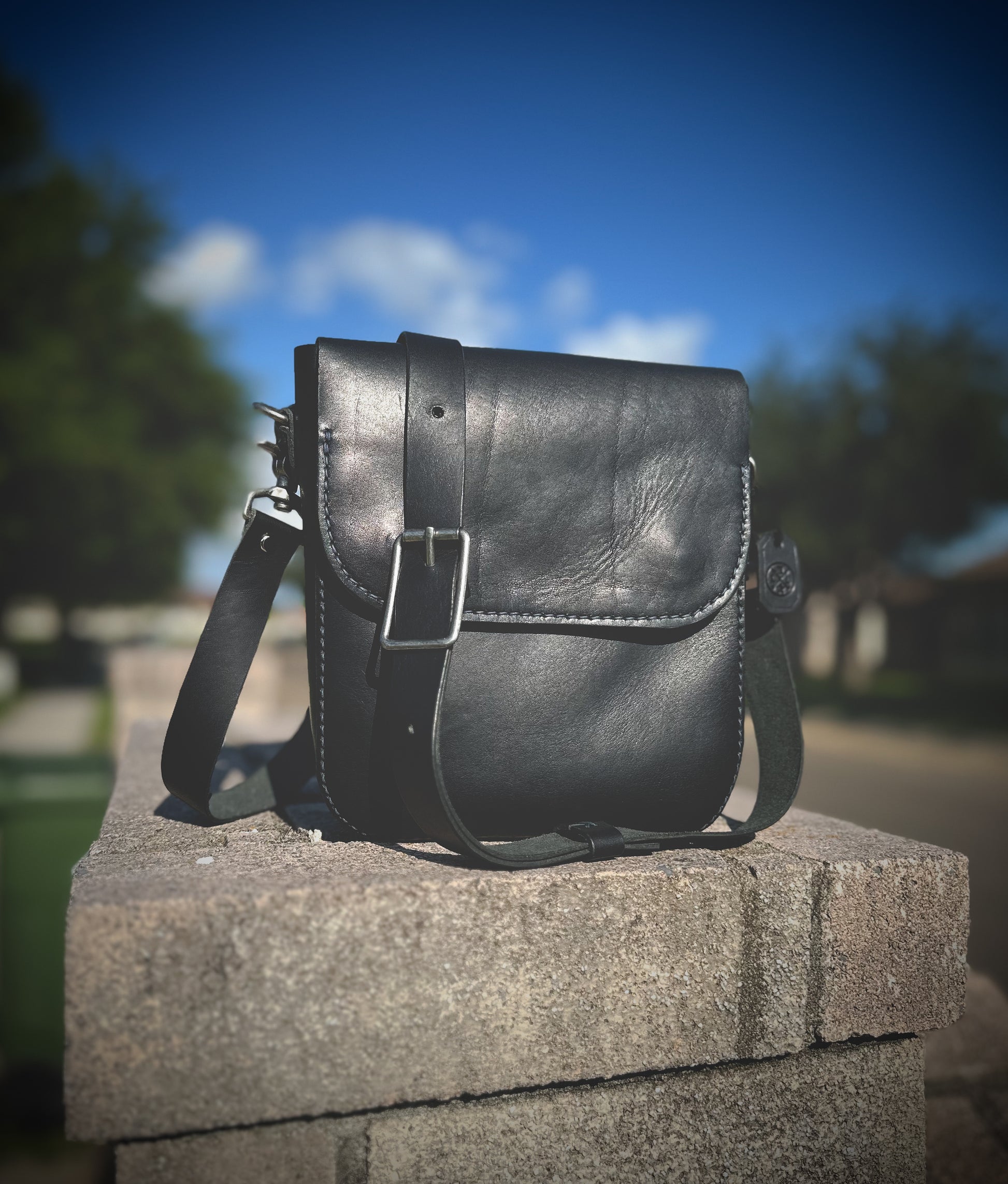 Black with Blue Thread ‘Maverick’ Full Grain Leather Crossbody Bag
