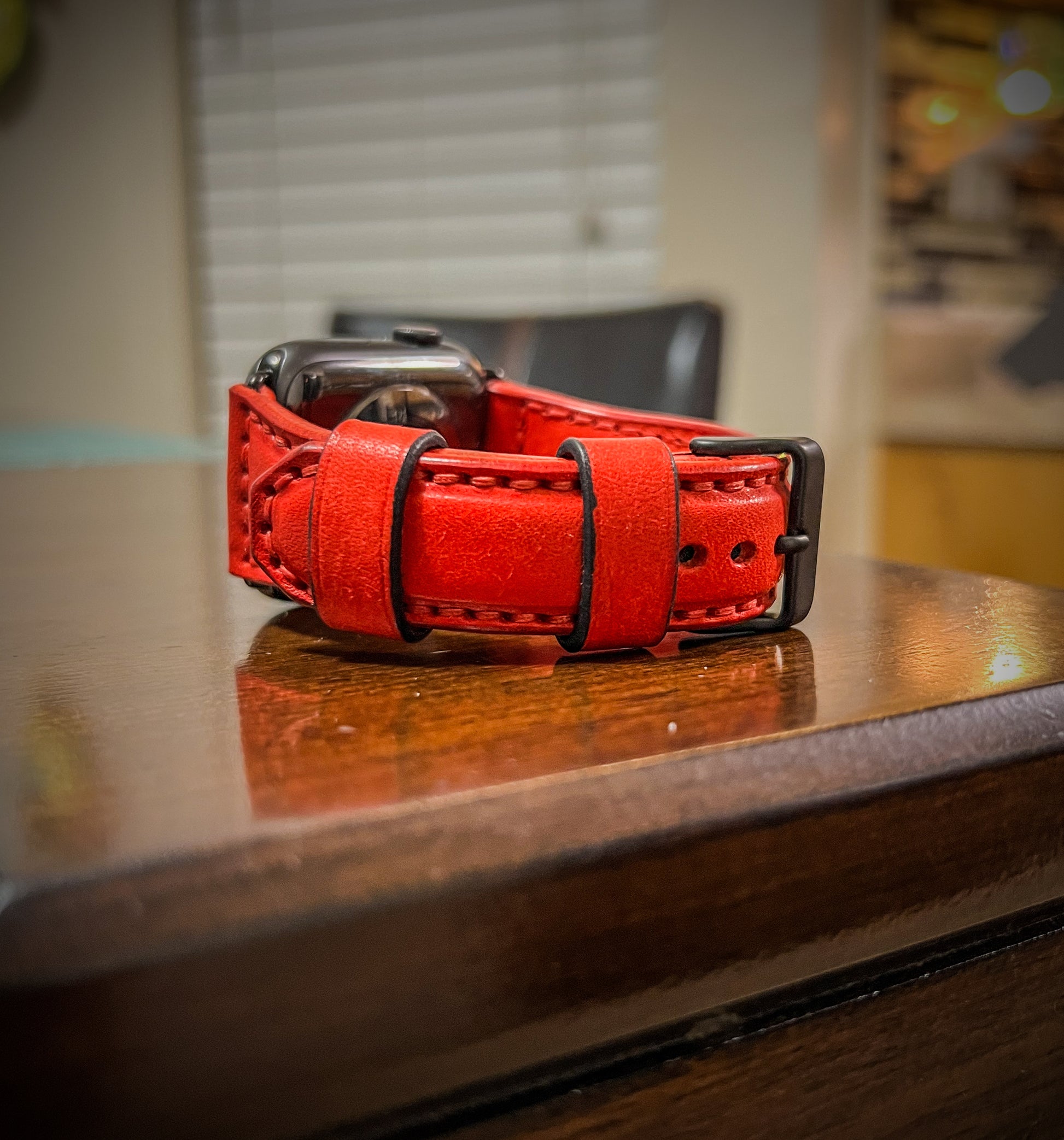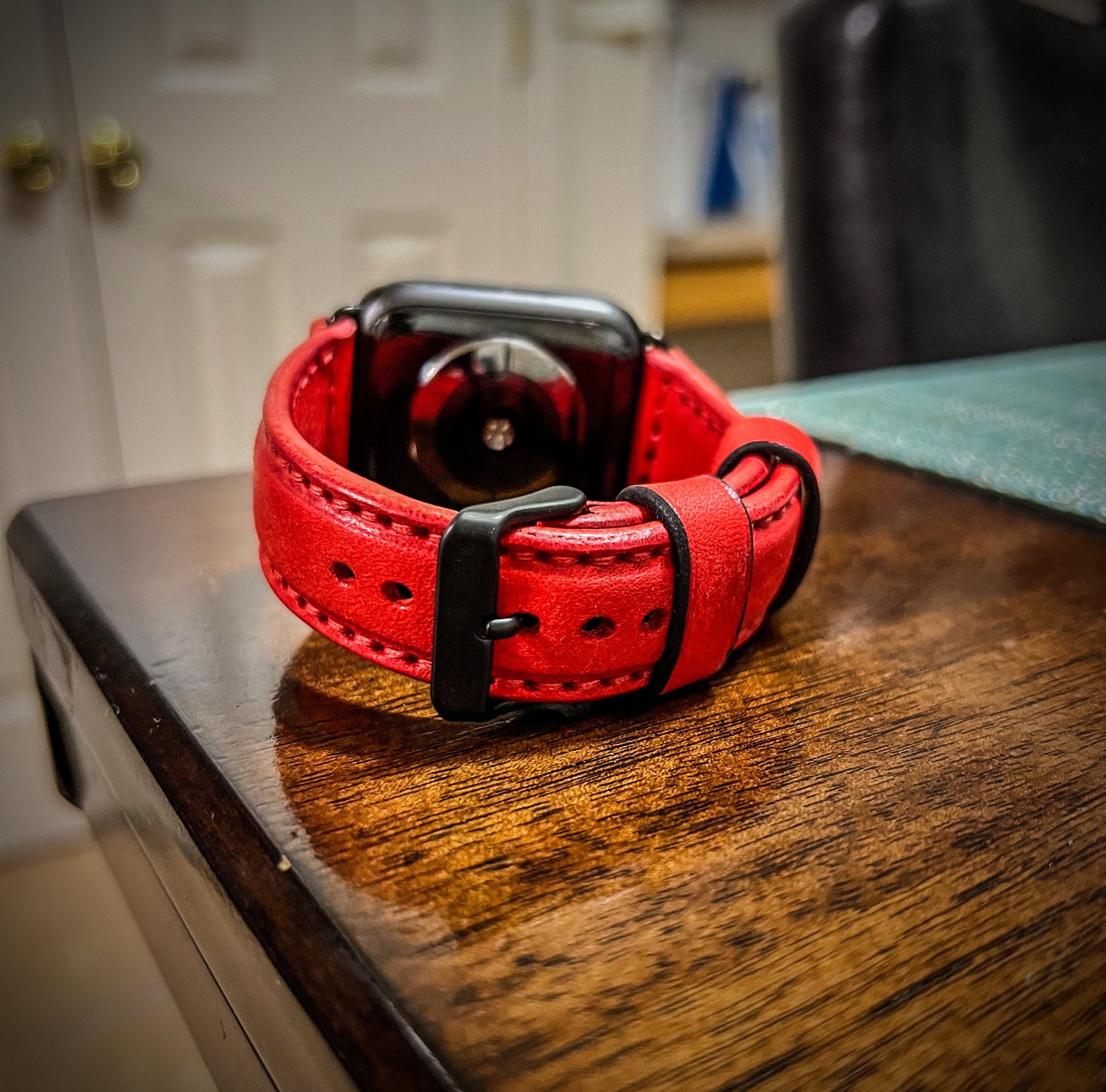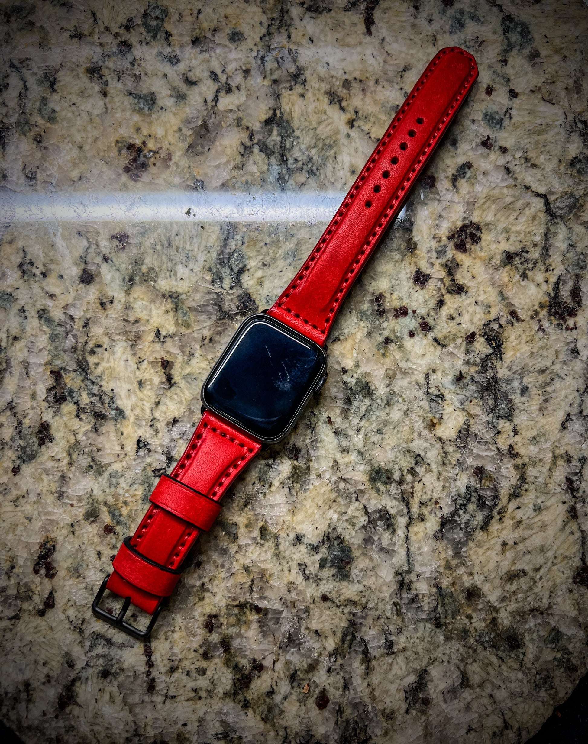 Crimson Full Grain Veg Tanned Leather - Apple Watch Strap (Ready to Ship)