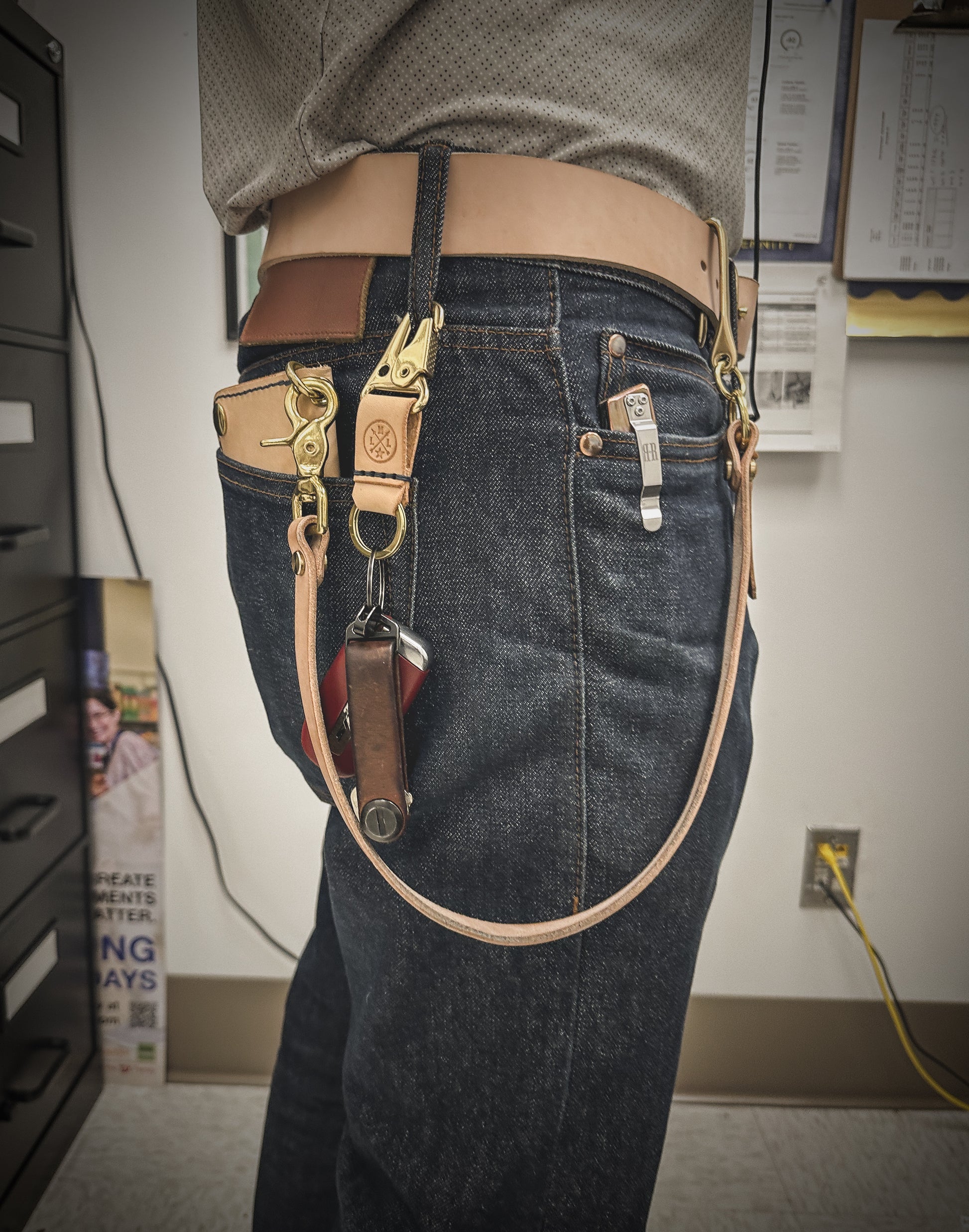 Full grain vegetable-tanned key chain with 1” HK clip, either in solid Brass or Black SS.