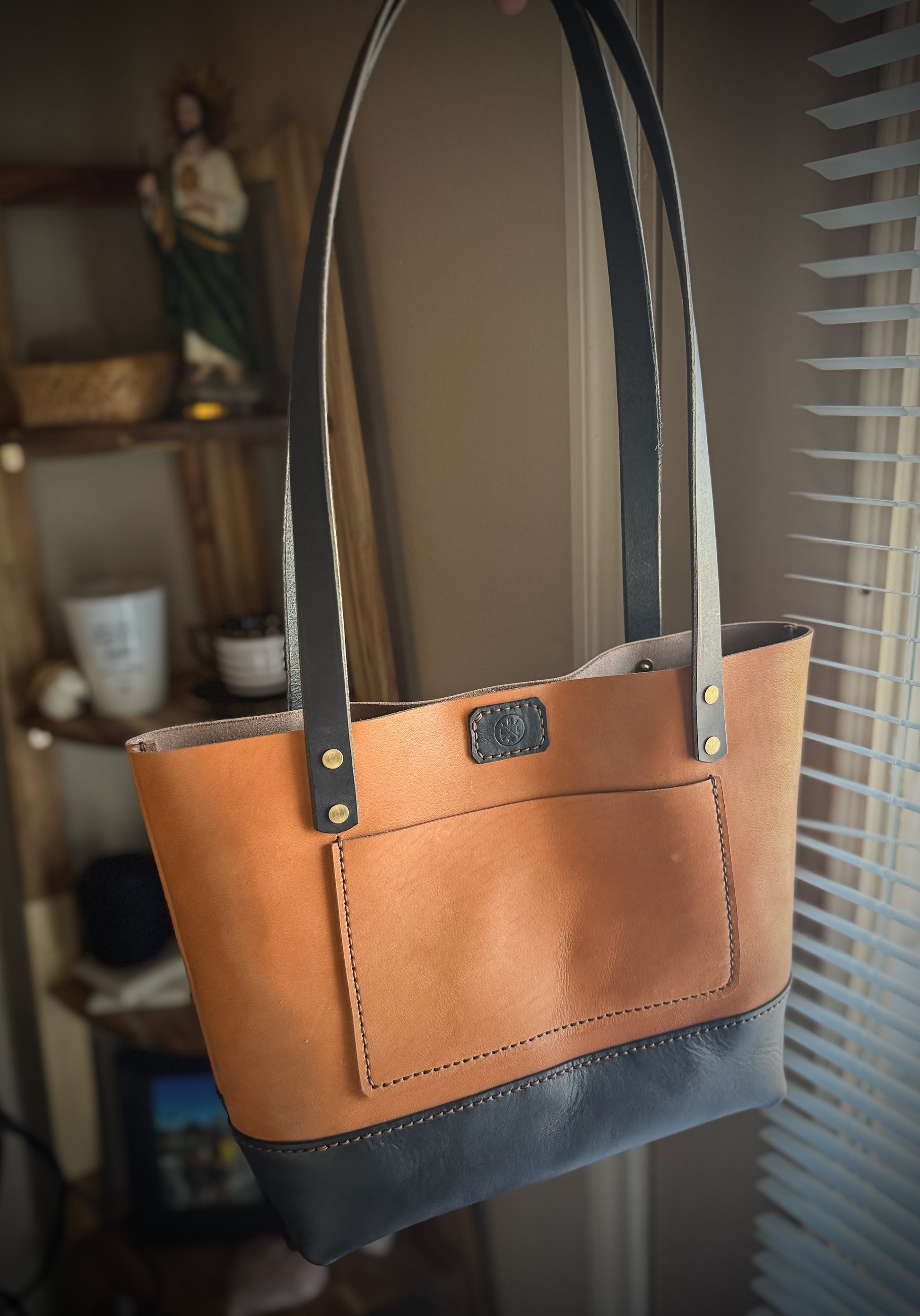-This item is a full vegetable tanned Horween bag using Dublin Natural and Black. This bag will patina with use, the bag was constructed from the bottom up handmade sewn by hand using a traditional saddle stitch method.
